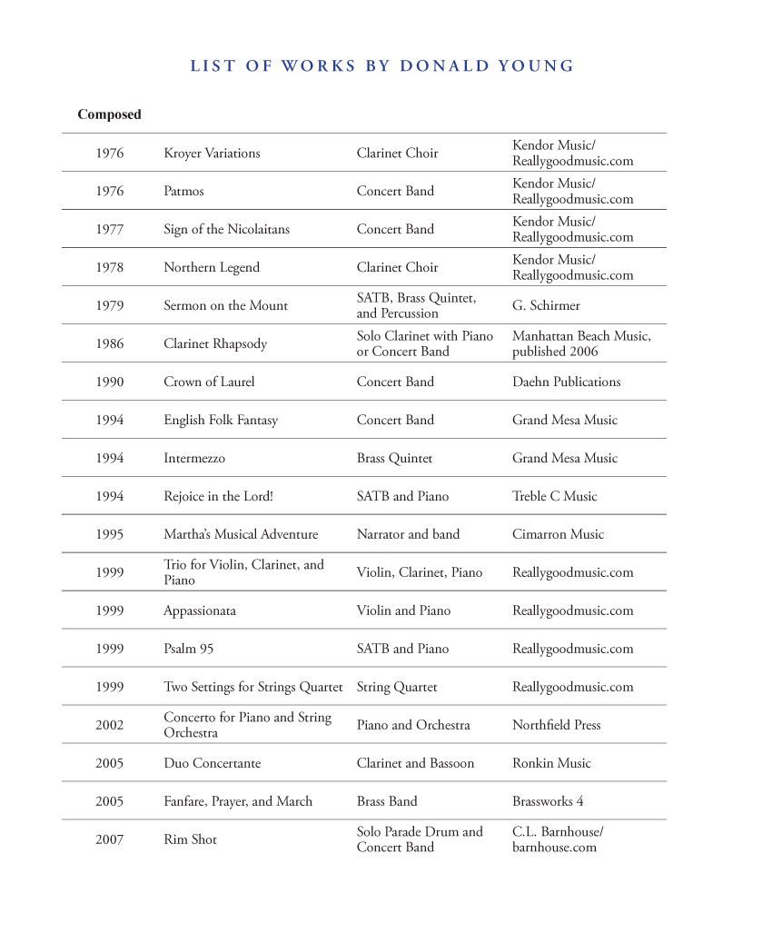 also read: List of Donald J. Young's Compositions